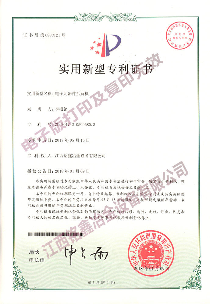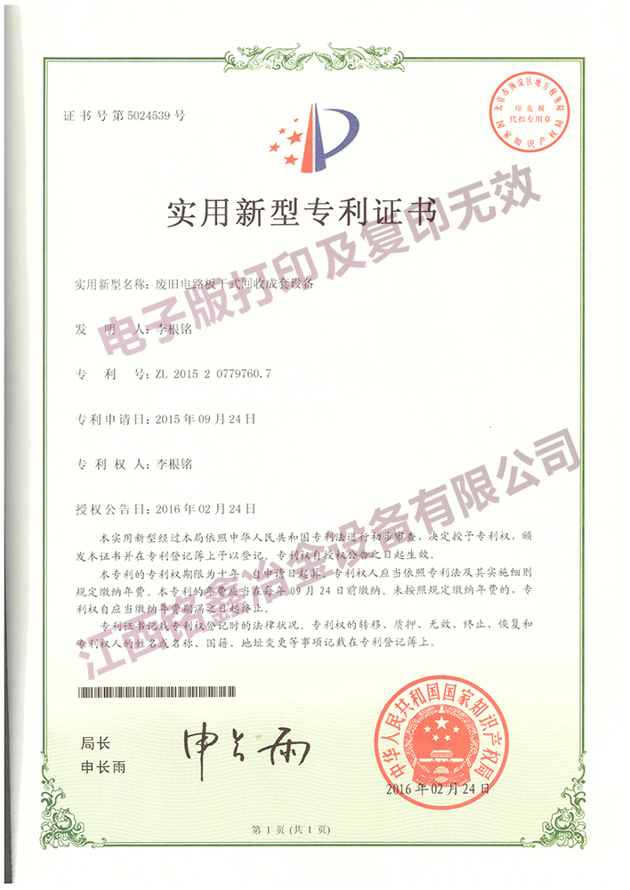• 廢舊電路板干式回收成套設(shè)備- ZL20150779760.7