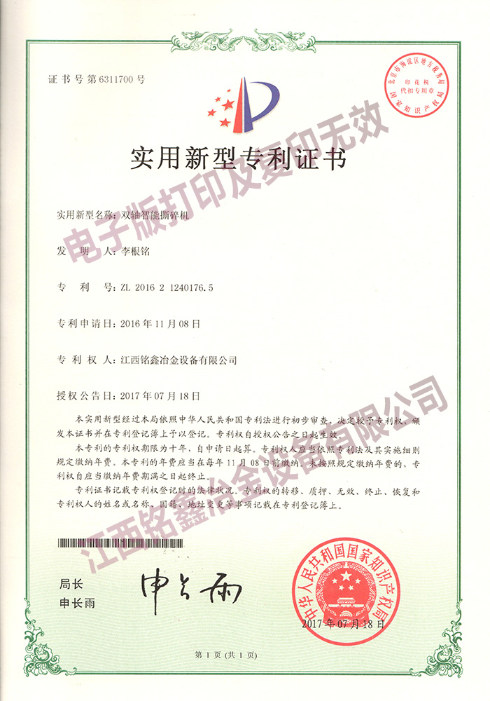 • 雙軸智能撕碎機(jī)-ZL201621240176.5
