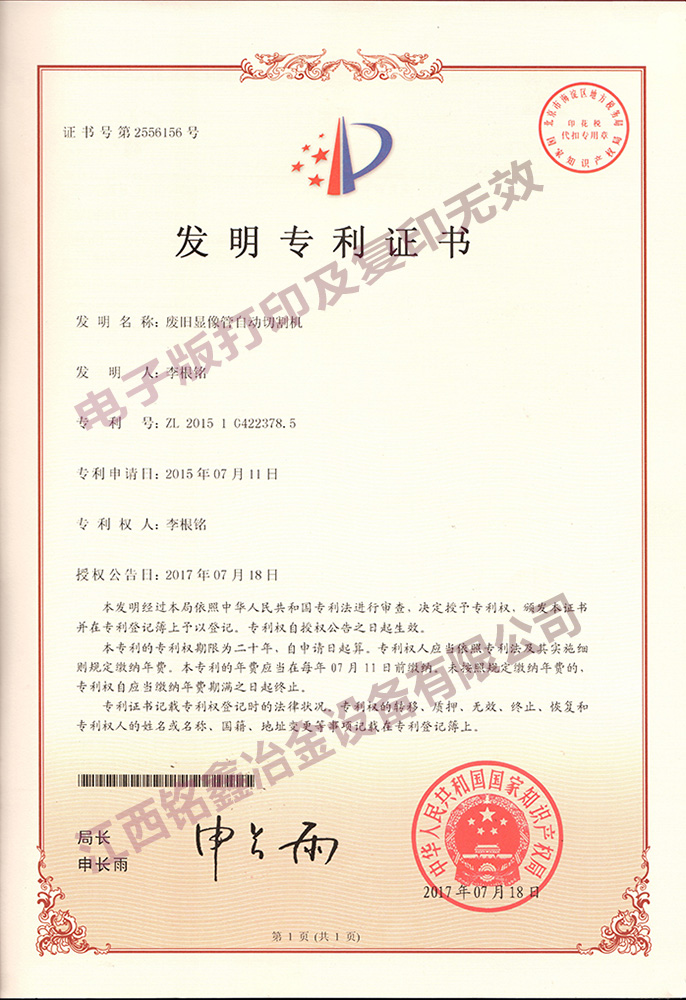 • 廢舊顯像管自動(dòng)切割機(jī)-ZL201510422378.5