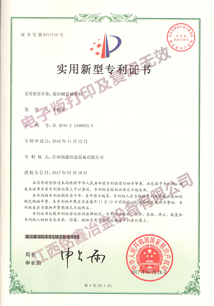 • 廢舊硬盤破碎機(jī)-ZL201621248023.5