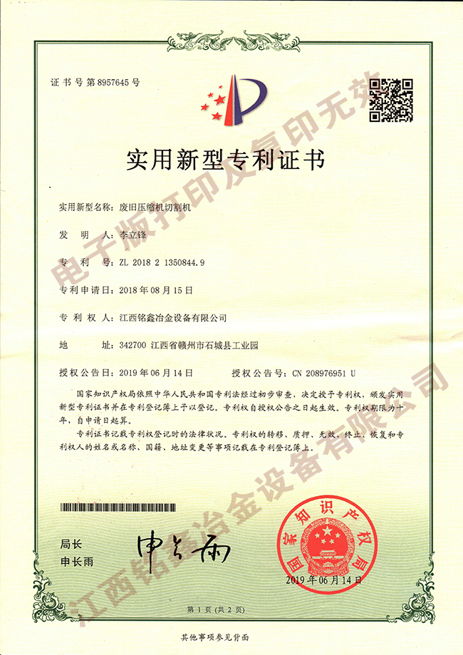 • 廢舊壓縮機(jī)切割機(jī)-ZL201821350844.9