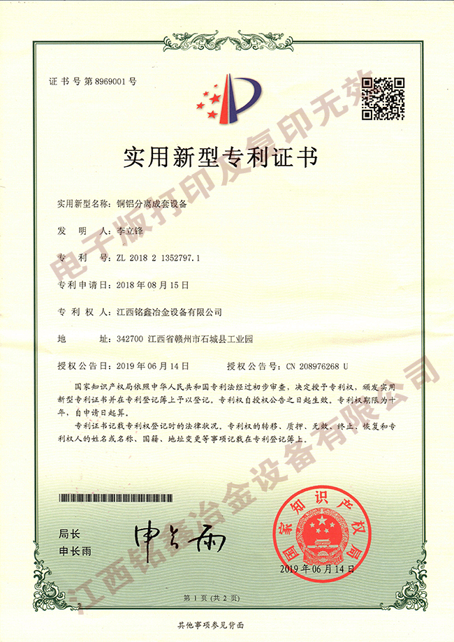 • 銅鋁分離成套設(shè)備-ZL201821352797.1