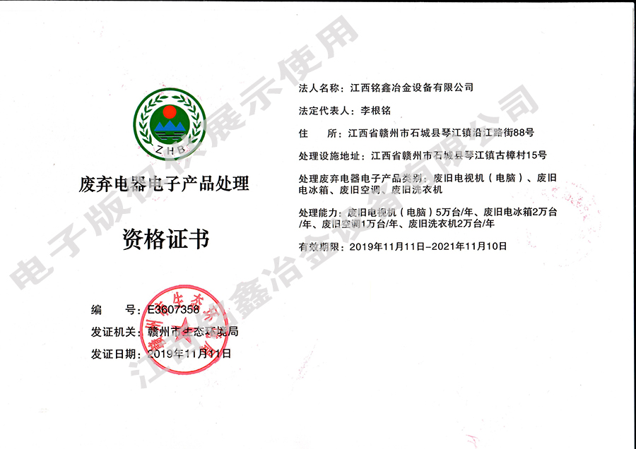 • 廢棄電器電子產(chǎn)品處理資格證書